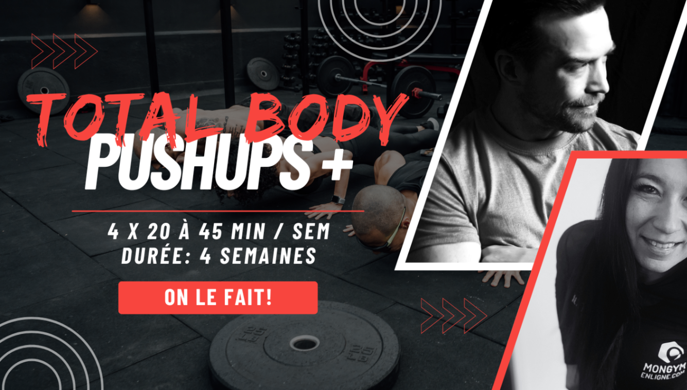 Le programme "Total Body Push-ups + " est un programme ciblé, avec une belle progression tout au long des 4 prochaines semaines.